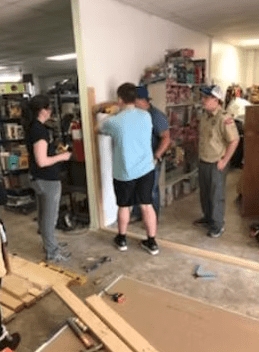 Manna Storehouse has recently been involved with helping several Boys Scouts work towards earning their Eagle Scout badges (The highest honor) by doing projects for us to help smooth our daily operations. One recent project was performed by Jason Overton from Boy Scout Troop 301. Jason’s project was to design, build and install some storage shelves for Manna to store items that are to be used at follow on seasonal garage sales. For example, we gather donated Christmas items throughout the year, give some as requested to our clients, and put the remaining on display for sale during the Christmas season. Storage is always a concern for us and thanks to Jason and his leadership, he has relived some of those problems.
